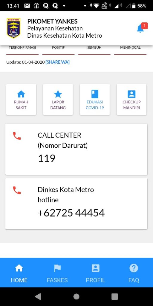 Disamping itu, Dinas Kesehatan Kota Metro juga meluncurkan aplikasi Layanan Kesehatan terkait Covid-19 berbasis android, yang bernama PIKOMET YANKES yang dapat diunduh di Google Play Store, pada link: https://play.google.com/store/apps/details?id=com.pikomet.diggi