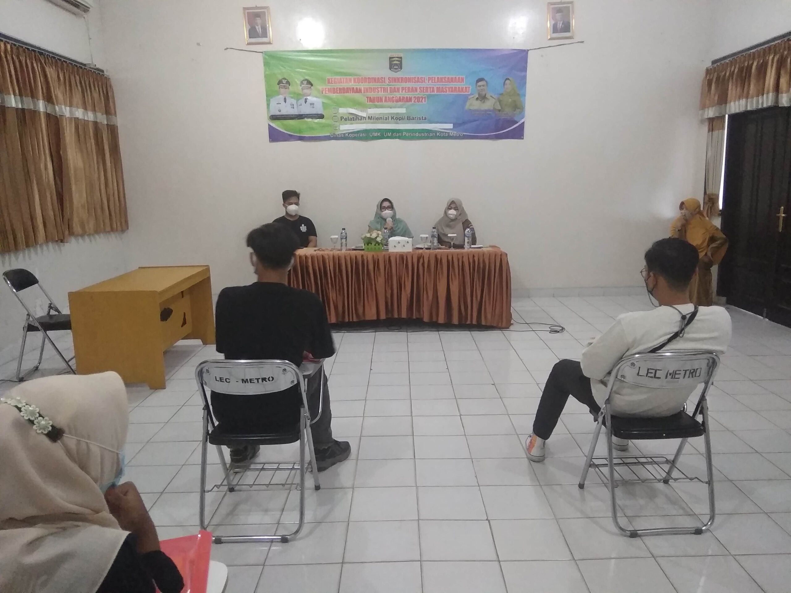 Dinas Koperasi, UMK, UM dan Perindustrian Kota Metro mengadakan Pembukaan Pelatihan Milenial Kopi/Barista pada Kegiatan Koordinasi, Sinkronisasi, Pelaksanaan Pemberdayaan Industri dan Peran Masyarakat yang berlangsung pada Selasa, 22 Juni 2021 di LEC Kartikatama Metro.