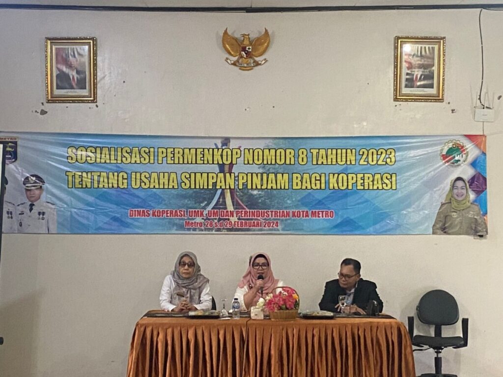 Dinas Koperasi, UMK, UM dan Perindustrian Kota Metro mengadakan Sosialisasi Peraturan Menteri Koperasi Nomor 8 Tahun 2023 tentang Usaha Simpan Pinjam bagi Koperasi Tahun Anggaran 2024, dilaksanakan di LEC Kartikatama Metro pada tanggal 28 – 29 Februari 2023. Sosialisasi Peraturan Menteri Koperasi ini diberikan kepada Koperasi Simpan Pinjam, Koperasi Simpan Pinjam Pembiayaan Syariah, Unit Simpan Pinjam Koperasi dan Unit Simpan Pinjam Koperasi dan Pembiayaan Syariah.